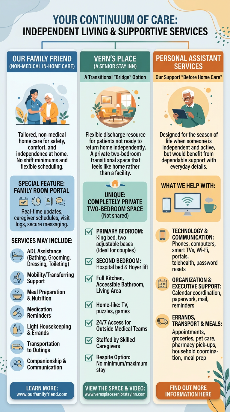 They struggle before that point.This is the stage where parents are still independent, living at home, and managing most things on their own—but everyday tasks start to pile up. Technology becomes frustrating. Driving feels stressful. Errands take longer. Appointments require backup. Nothing is “wrong” enough to justify home care, yet something feels off.